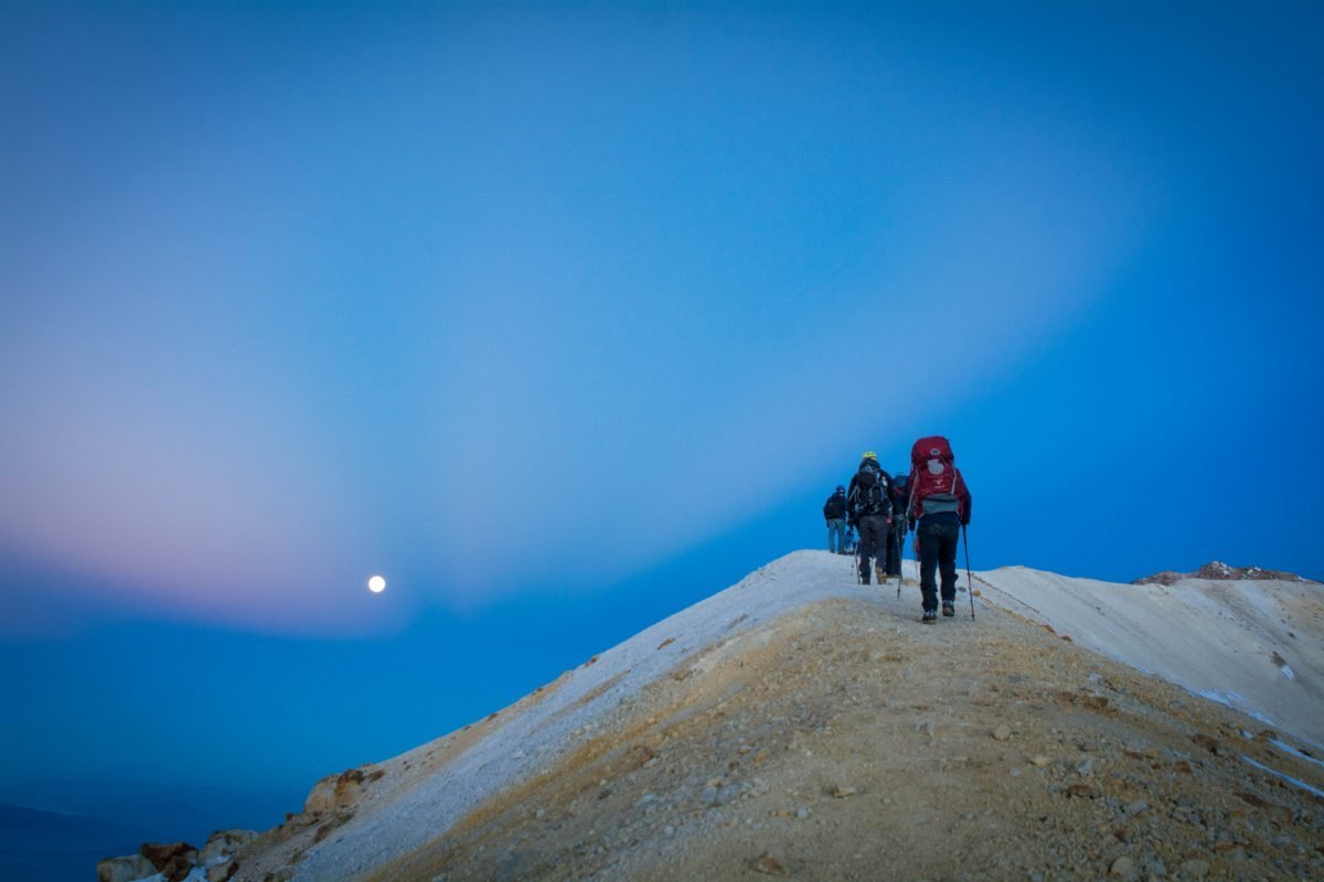 Suba por un sendero intermedio las empinadas laderas del volcán Iztaccíhuatl