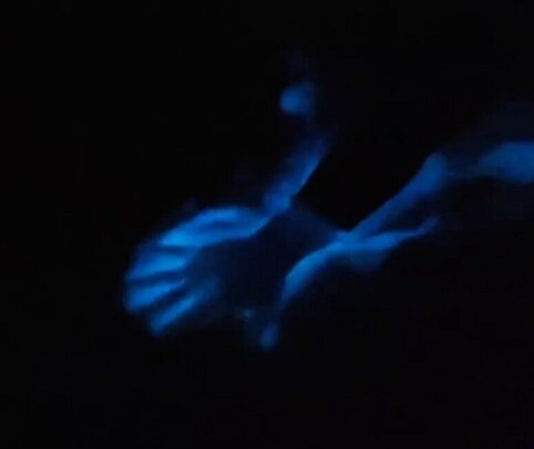 microorganismos que activan una descarga de energía en forma de luz cuando son tocados. Al bajar de la