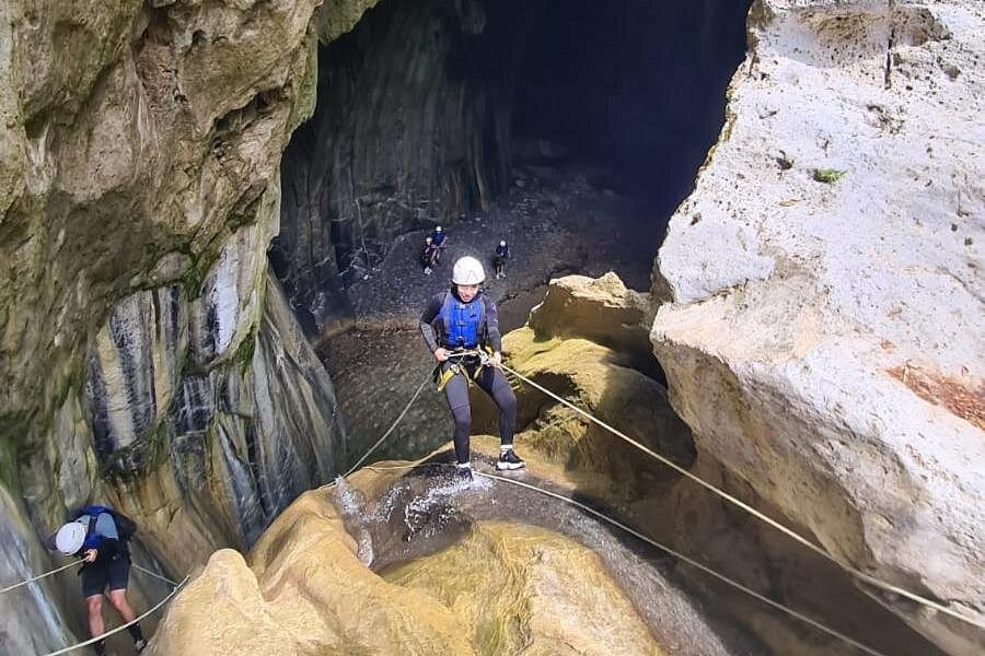Planifique una aventura al aire libre cerca de Monterrey con un viaje de barranquismo extremo de día completo al Cañón de Matacanes. Prepárese y explore los rápidos de los ríos, las cascadas y los túneles subterráneos con un guía. Nade, escale y haga rappel a través de este pintoresco paisaje que ofrece muchas emociones para los viajeros activos. Recogida en Monterrey y opciones de alojamiento en un Ecolodge disponibles.