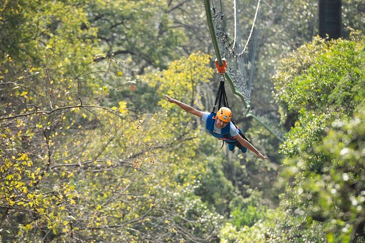 Este Combo de Aventura te lleva a las 4 actividades principales en el área de Cola de Caballo. Además puedes visitar la hermosa cascada que le da nombre a este lugar. Prepárate para vivir un día intenso de actividades de aventura, saltar del Bunge más alto de México, volar en un columpio gigante, deslizarse sobre tirolesas y puentes colgantes.