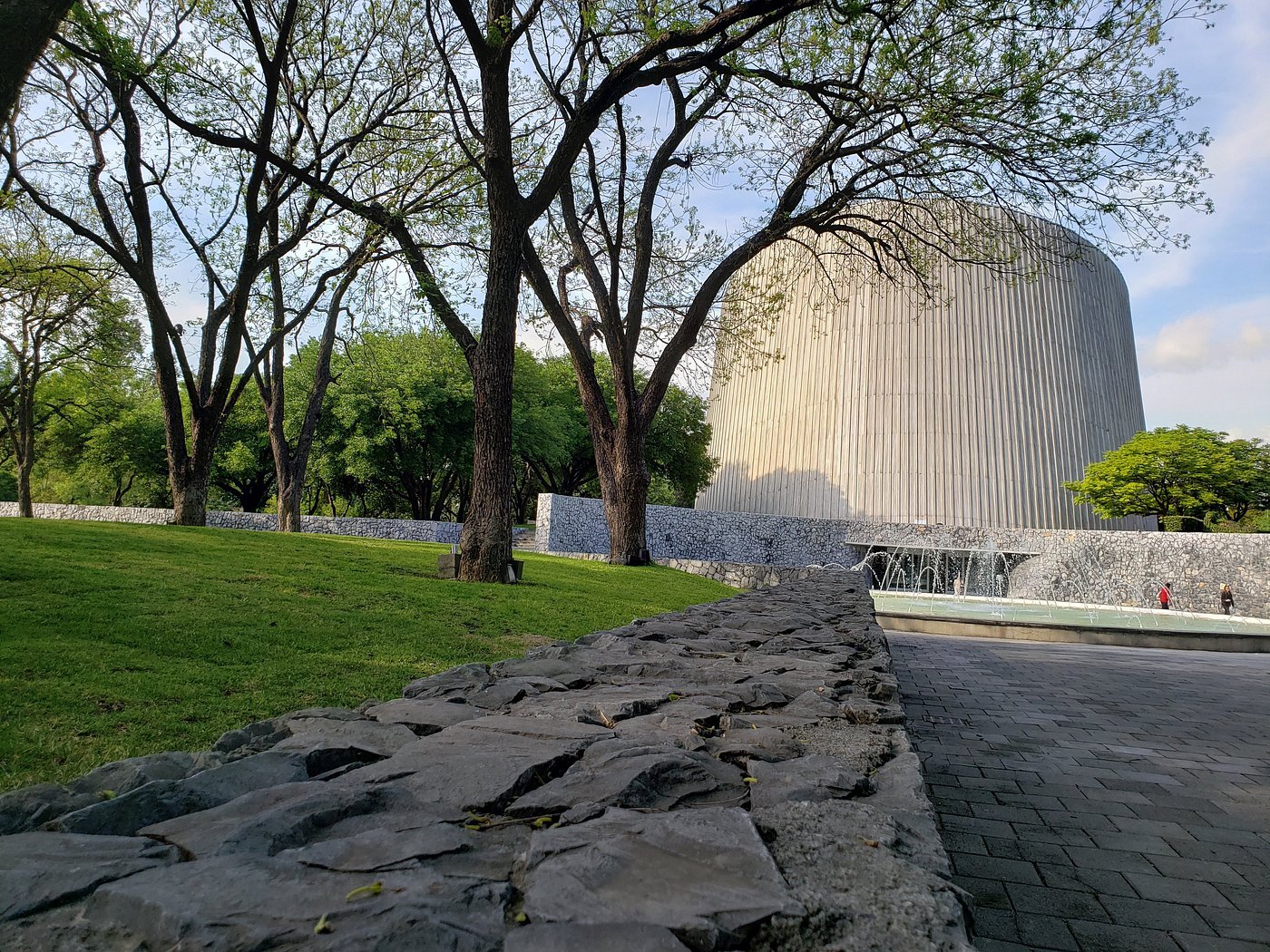 En el vestíbulo del museo se encuentra el monumental mural metálico «El Espejo», del artista mexicano Manuel Felguerez.
